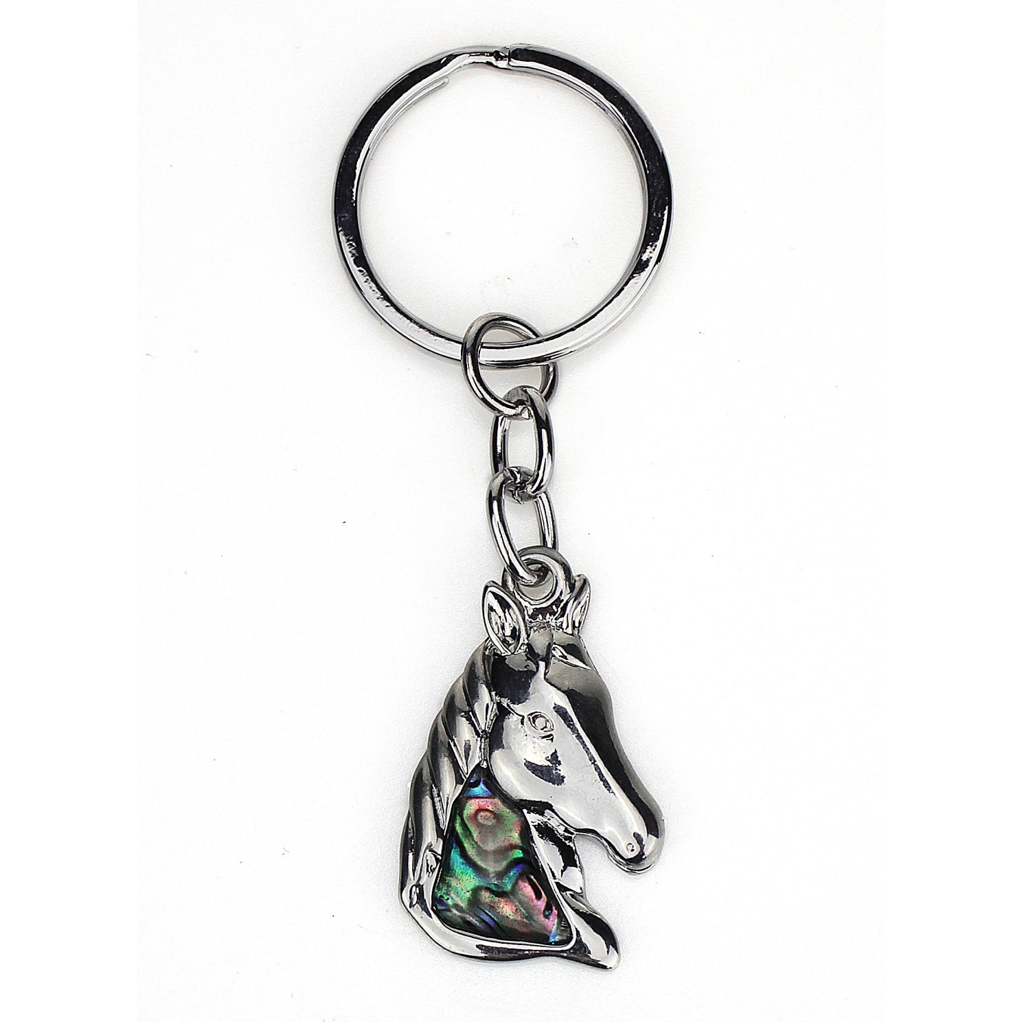 Schlüsselanhänger Pferdekopf 4,5 cm silber, Paua Muschel Abalone Perlmutt blau grün rosa, Glücksbringer Schlüsselring